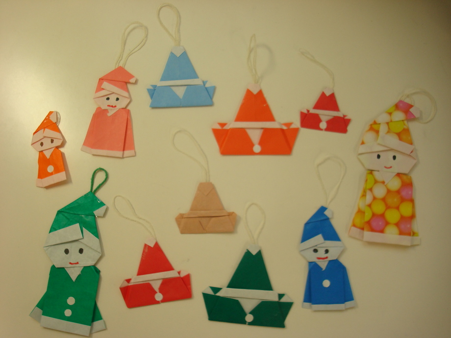 昨年に引き続き、今年も様々なバージョンのサンタクロースを折っていただきました。